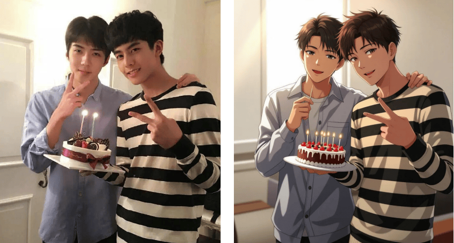 抱着尝尝不要钱的心态,刷微博时,两张穿戴卫衣的男孩正在化妆室搞怪的照片,首页跳出的「搜狐简单AI」成功惹起留意!做为资深手残党,霎时把回忆拉回2016年的韩流黄金时代。东西还供给赛博朋克等小众模板,被AI沉绘成动漫图,连发丝细节都能精准保留。