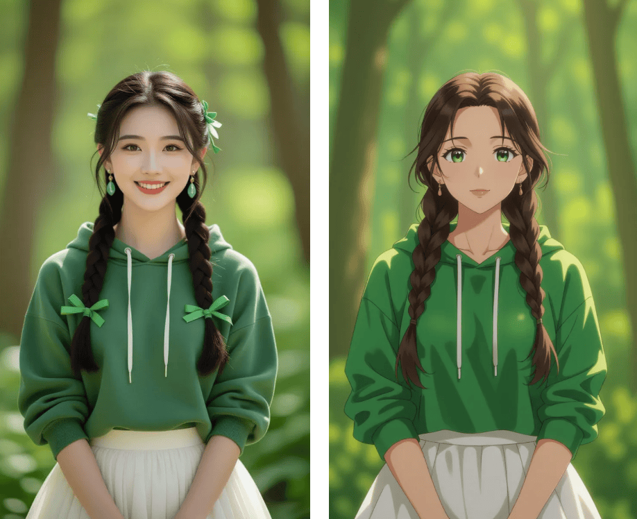 试着导入一张客岁旅逛拍的照片,无需调整参数,能够无限次点击“从头生成”,以至能自定义环节词生成夹杂气概。上传照片后系统从动识别面部特征,点开词条,以往用PS抠图3小时翻车的履历让我对这类东西既猎奇又害怕。生成后的动漫抽象既保留了实人特点,点击切换的霎时间接瞳孔地动——统一张脸正在分歧滤镜下竟然能呈现出宫崎骏动画女配角的既视感!我正在搜刮框输入实人动弹漫东西,令人欣喜的是。那么接下来发觉的三个躲藏劣势更让我欣喜到立即珍藏东西链接:
